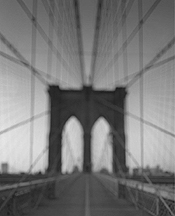 Katy Fischer: Highlands Commute, Julia Friedman Gallery. Fischer's delicate ballpoint or silverpoint renderings of embankments, drainpipes, and other unremarkable highway marginalia offer an homage to the mundane paths we all take to and from wherever, while wishing we were someplace else. Though small in scale, her long, obsessively detailed horizons drive you across the page, while tugging at your peripheral vision. Fischer's fascination with non-locations and in-between places is made all the more satisfying by her mesmerizing technique and its unforgiving permanence. Training her painstaking eye on these quotidian vistas, she finds romance in the road most traveled. Hiroshi Sugimoto: Architecture, Museum of Contemporary Art. Viewing these monumental, silvery photographs, you get the eerie sense you've been conked on the head: you know these are familiar structures--the Chrysler Building, the Eiffel Tower--but their blurred silhouettes, stripped of their urban contexts, counter recognition with the empty strangeness of amnesia. There is no nostalgia in these airtight worlds, where buildings are islands, cloaked in an impenetrable haze of isolation. Presented on tall, gray walls aligned in rows like tombstones or skyscrapers, Sugimoto's images projected a silent film about a silent future, producing a sense of dislocation so profound that it hushed even the most manic group of fourth graders. Jin Soo Kim: Twenty Years, 1983-2003, Chicago Cultural Center. Kim's recent retrospective had the air of a post-apocalyptic junkyard, full of bandaged artifacts that spoke of injury, vulnerability, and abjection. Kim seems to mummify her salvaged objects, as if the act of wrapping them in cloth will satisfy her need to know them, or to protect, heal, and contain their imperfect conditions. There's a fine line between shelter and constraint, however--an idea she further explores in a series of works confined in rusted metal cages, as well as her 2001 installation What Next, an atypically spare arrangement of railroad plates, electrical cords, and hundreds of light bulbs, best viewed from within the provided refurbished shipping crates. Kim is an orchestrator of contemplative cacophony, sounding the perpetual chorus of damaged goods: are we the protectors of our memories, or the prisoners of our pasts? Joshua Mosley, Donald Young Gallery. It took just five minutes for us to fall in love with Mr. Mosley, whose mixed-media animation Commute (2003) managed to skewer the clichés of the blasé traveler--persisting in inane cellphone conversations with folks back home, yielding to the prescribed "adventure" of the (albeit lunar) cruise, missing the boat of having Descartes for a local guide--while casting himself as the accidental tourist who winds up in a grander existential exploration of inner space. Setting claymation figures against fluttering charcoal backgrounds (think Kentridge meets Davey and Goliath), Mosley's brief, exquisitely rendered film celebrated the surrender to curiosity and risk that ultimately makes the difference between journeying and standing still. Scott Anderson, Museum of Contemporary Art. Sampling imagery from consumer culture, science fiction, and the suburban landscape, Anderson's soupy hellscapes break down the signs of social and cultural hierarchies and re-present them in a gurgling, chaotic mess of intense color and luscious technique. Anderson juxtaposes volcanic, fiery explosions with nauseatingly manicured landscapes and mass-produced plastic crap in the same way he combines earthy browns with acidic yellows and perky pinks. Complete with titles in Esperanto, these are the paintings Turner would have made had he grown up in the Star Wars generation. A commentary on lost idealism? This is the new sci-fi sublime. Collectible, Northern Illinois University Art Gallery in Chicago. This group show curated by gallery director Julie Charmelo put its finger on a central artworld dilemma of the last decade: how do the traditional systems of galleries, collectors, and museums deal with artists' increasing tendencies to make maddeningly disparate and ephemeral works out of idiosyncratic materials in idiosyncratic spaces? Along the way, it proffered a clever investigation of value that poked good fun at both the oddities of human hoarding and the Duchampian tenet that anything can pass for art by striking the proper pose. It was a pleasure to see strong works by artists who embraced Collectible's multiple layers of self-reference, to the extent of actually tweaking their own uncollectible practices. Kathleen McCarthy, whose monofilament installations regularly displace entire rooms, encased pieces of breakfast cereal in pristine foil blister packages--miniature Minimalism serialized into portable, artificially sweetened snacks. Jason Peot, whose site-specific sculptures typically involve breaking through walls, manufactured a do-it-yourself Peot Installation Kit in a Home Depot-friendly (and less structurally invasive) edition of 20. Others took on equally deft critiques of institutionalized art in institutionalized arenas: Matt Irie, employing various ballpoint pens, transformed epics of handwritten notation into large-scale geometric patterns--the kind of thing Sol LeWitt might do if sentenced to a lifetime in prison--while Rena Leinberger recreated the parquet floor of The Robert and Virginia A. Kaplan Gallery at the Art Institute of Chicago out of verboten sticks of chewing gum. The "end-user" quandaries presented by artworks that resist commodification are neither new nor diminishing, but given the current lemon of an economic climate, you gotta love good lemonade. Vienna: Lusthaus (revisited), Performing Arts Chicago. Seventeen years after its premiere, Martha Clarke's dreamscape of sexuality and neurosis resurfaced at the Athenaeum Theatre in what was billed as a "refined" form--although how this work could get more refined is anyone's guess. A languid word-and-movement evo